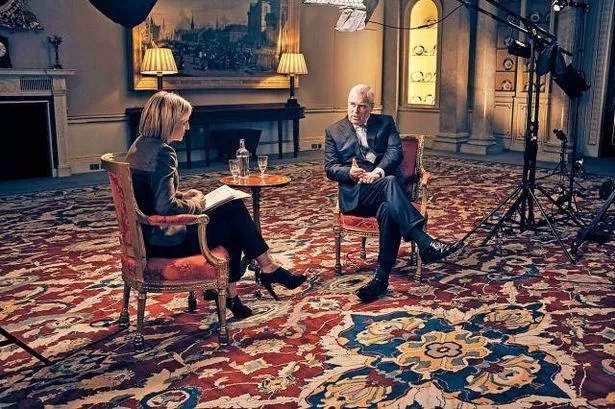 On the photo on the left: the Newsnight interview of Andrew by Emily Maitlis,